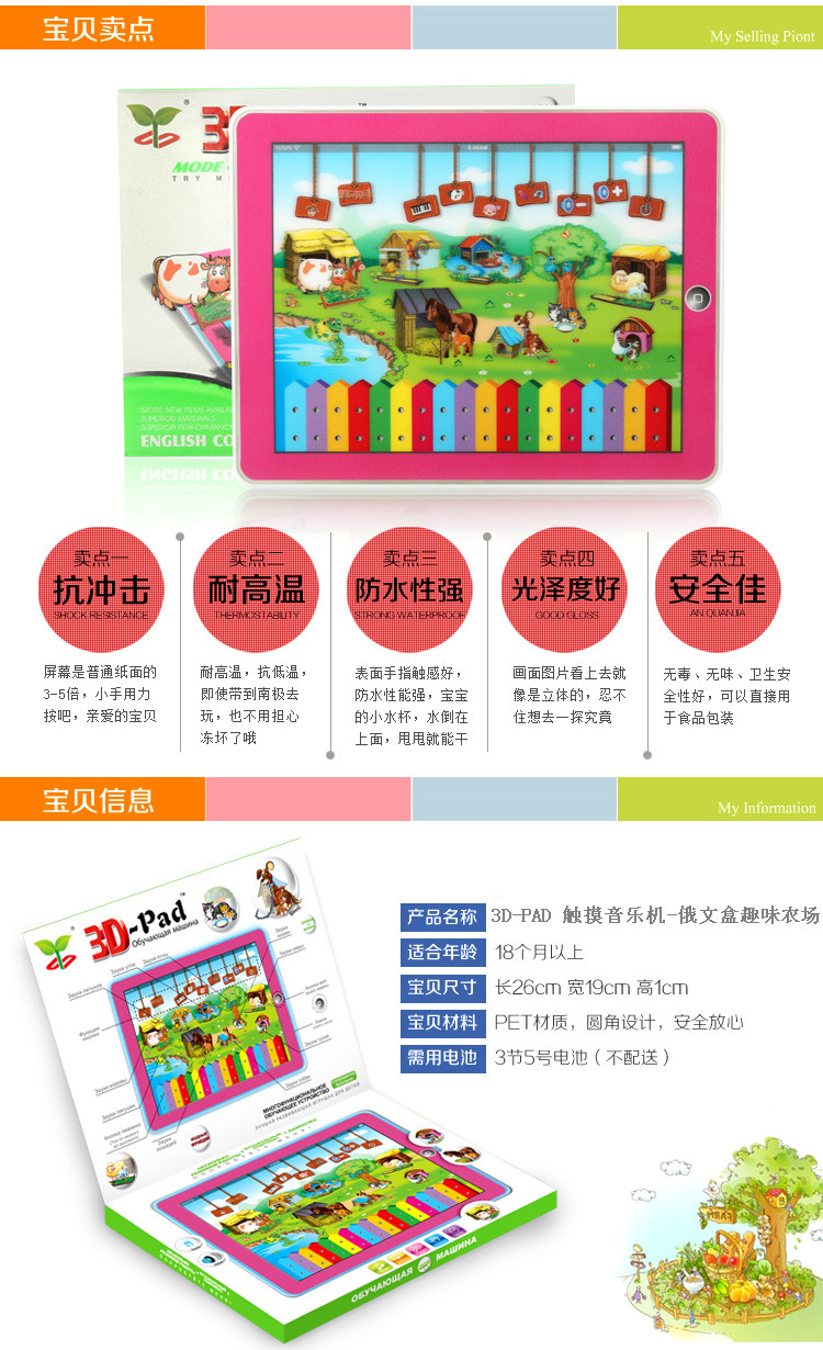 YS2911G 3D俄文盒农场玩具音乐机